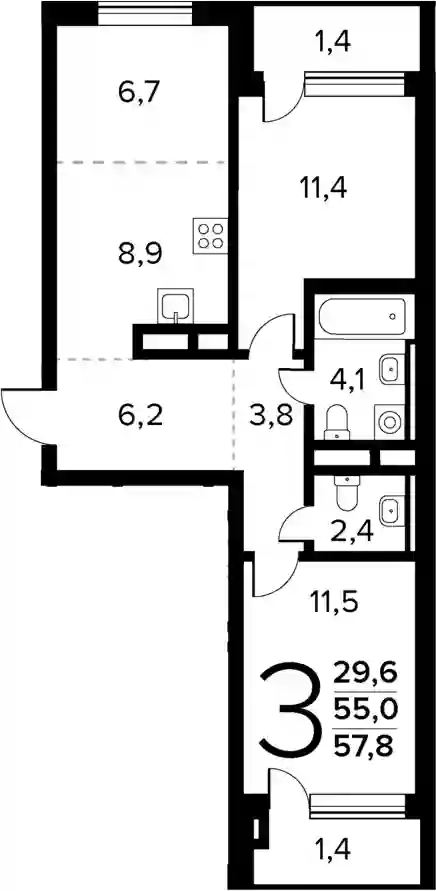 16 424 300 ₽3-к.квартира, 55.7 м², 6 эт.