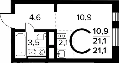 21.1 м2