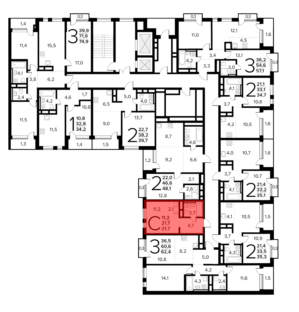 18 386 000 ₽3-к.квартира, 57.8 м², 8 эт.