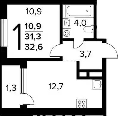 11 327 000 ₽1-к.квартира, 31.3 м², 1 эт.