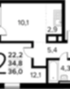 10 200 800 ₽2-к.квартира, 34.1 м², 5 эт.