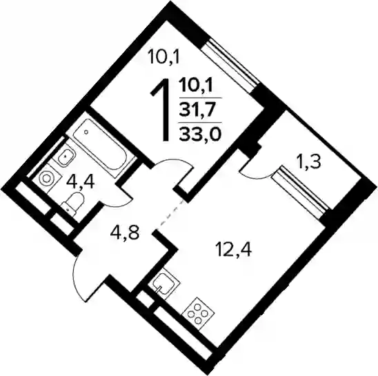 11 327 000 ₽1-к.квартира, 31.3 м², 1 эт.