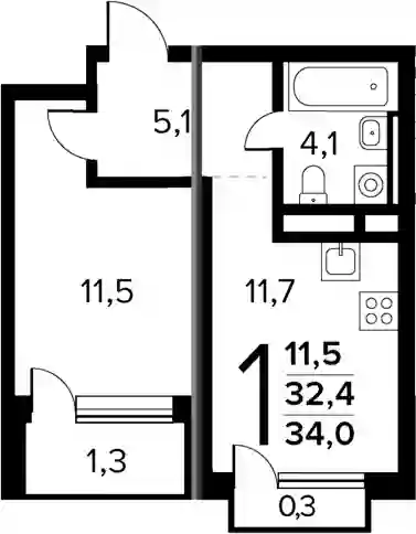 10 518 000 ₽1-к.квартира, 32.1 м², 1 эт.