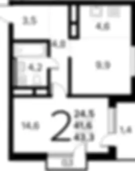 13 790 200 ₽2-к.квартира, 41.3 м², 5 эт.