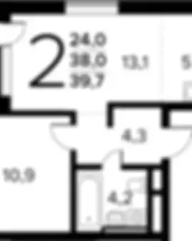 13 279 000 ₽2-к.квартира, 42.9 м², 4 эт.