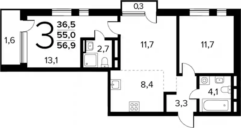 16 298 800 ₽3-к.квартира, 57.3 м², 11 эт.