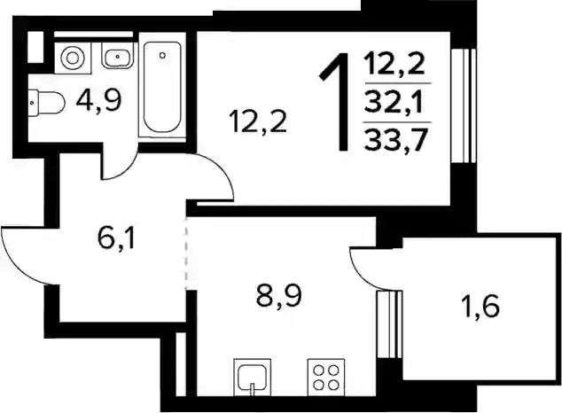 1-к.квартира, 32.1 м², 1 эт. в ЖК Новые Ватутинки мкрн. Заречный Корпус 6/5