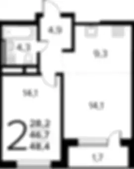 16 948 000 ₽2-к.квартира, 47.4 м², 1 эт.