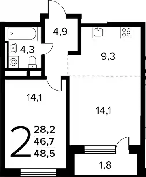 14 415 300 ₽2-к.квартира, 46.1 м², 9 эт.