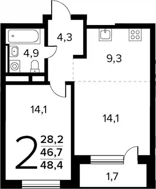46.7 м2