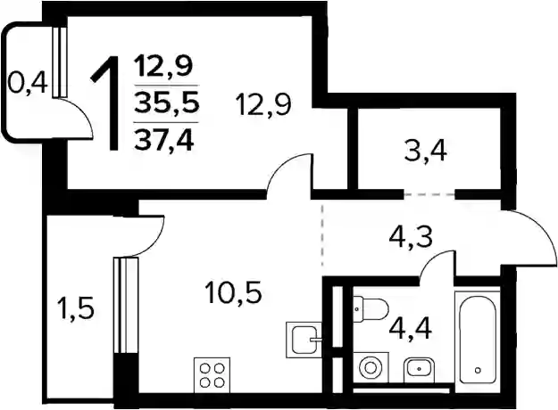 10 323 400 ₽2-к.квартира, 34.7 м², 12 эт.