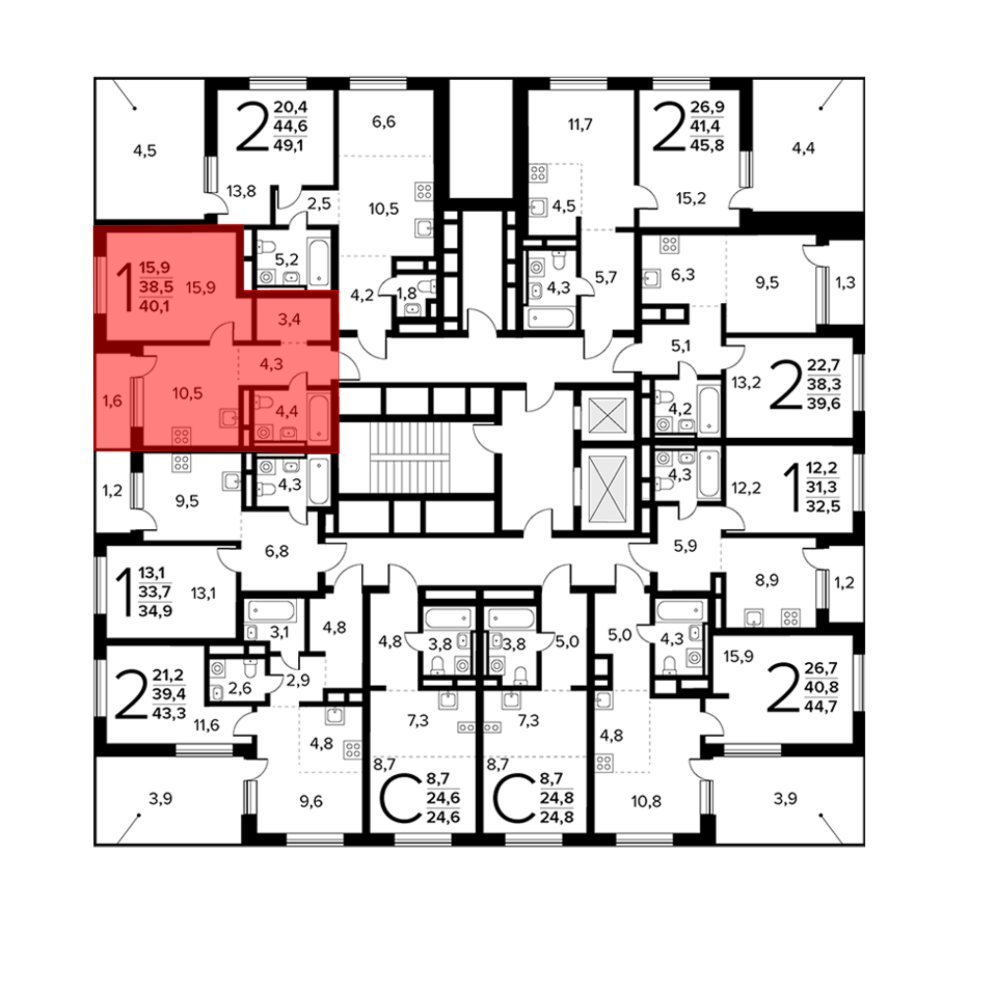 12 524 400 ₽2-к.квартира, 38.3 м², 12 эт.