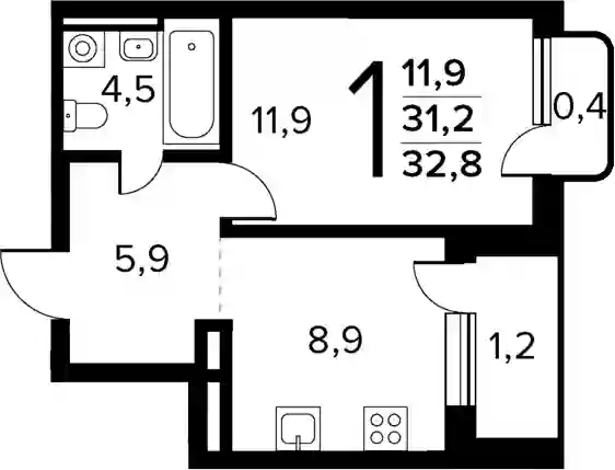1-к.квартира, 31.2 м², 5 эт. в ЖК Новые Ватутинки мкрн. Заречный Корпус 6/9