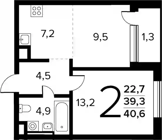 39.3 м2