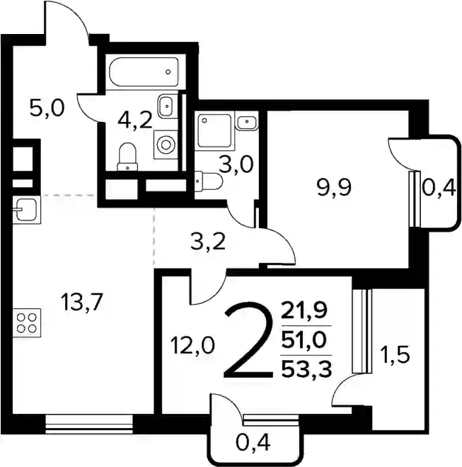 14 897 000 ₽2-к.квартира, 48.4 м², 4 эт.
