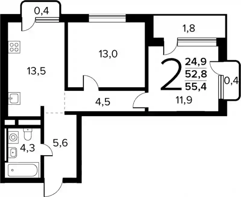 16 383 000 ₽2-к.квартира, 52.8 м², 13 эт.