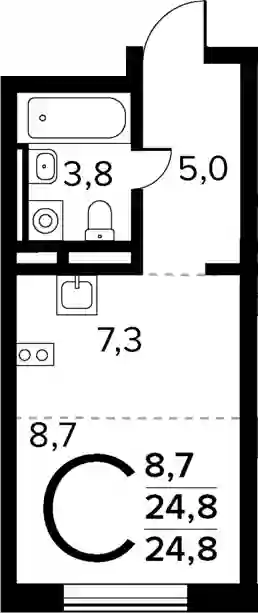 7 818 800 ₽Студия, 24.8 м², 13 эт.