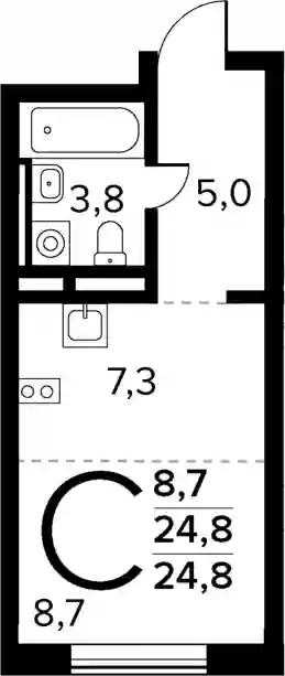 7 818 800 ₽Студия, 24.8 м², 13 эт.