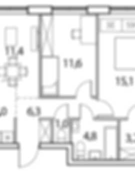 7 111 581 ₽3-к.квартира, 55.95 м², 4 эт.