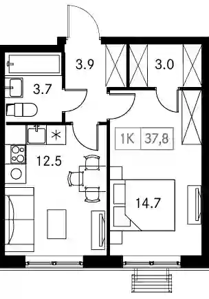 7 225 650 ₽1-к.квартира, 37.8 м², 16 эт.
