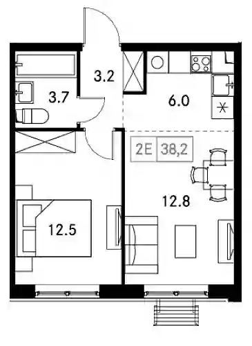 9 815 536 ₽2-к.квартира, 38 м², 12 эт.