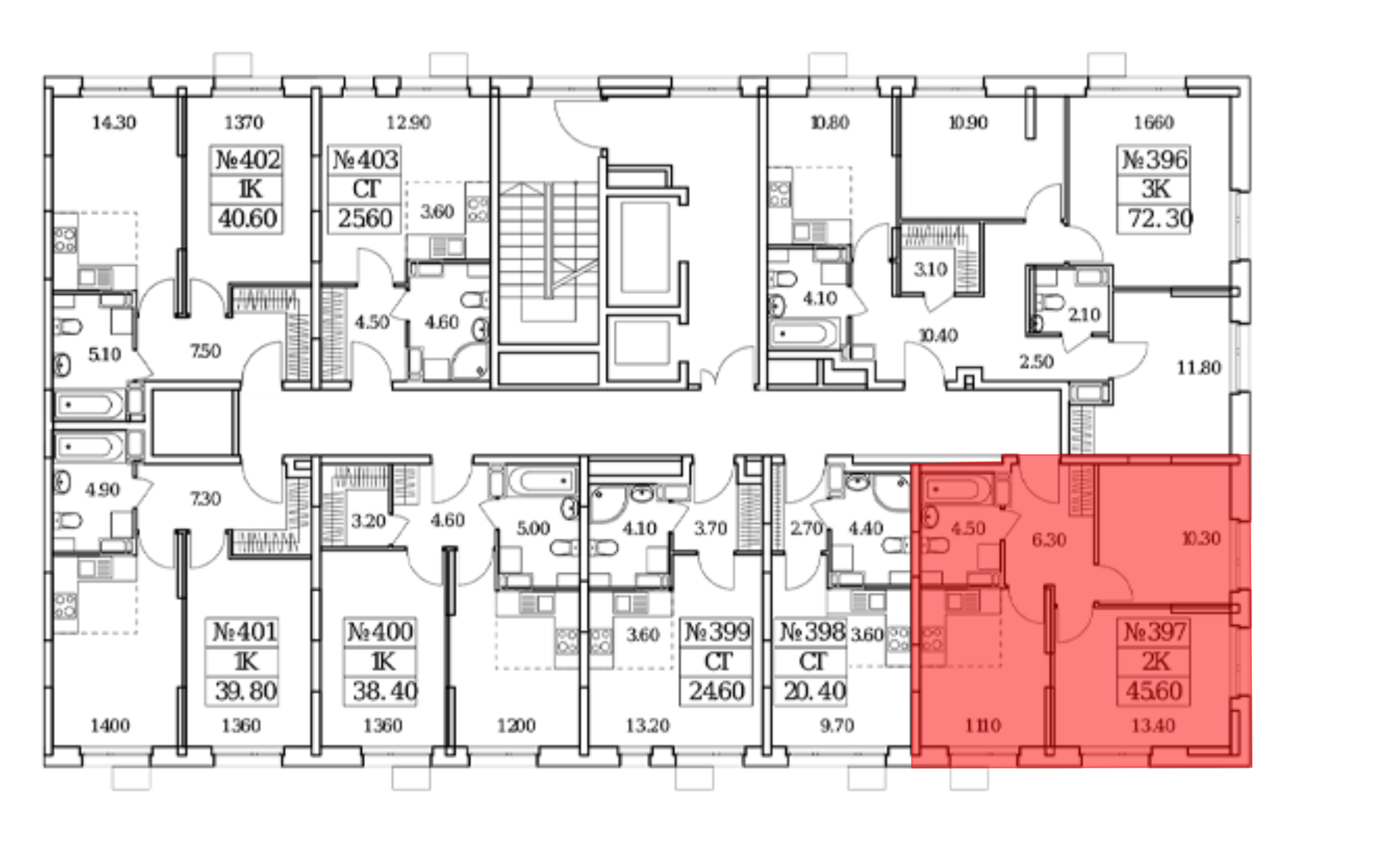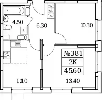 2-к.квартира, 45.6 м², 13 эт. в ЖК Облака 2.0 Корпус 2.1