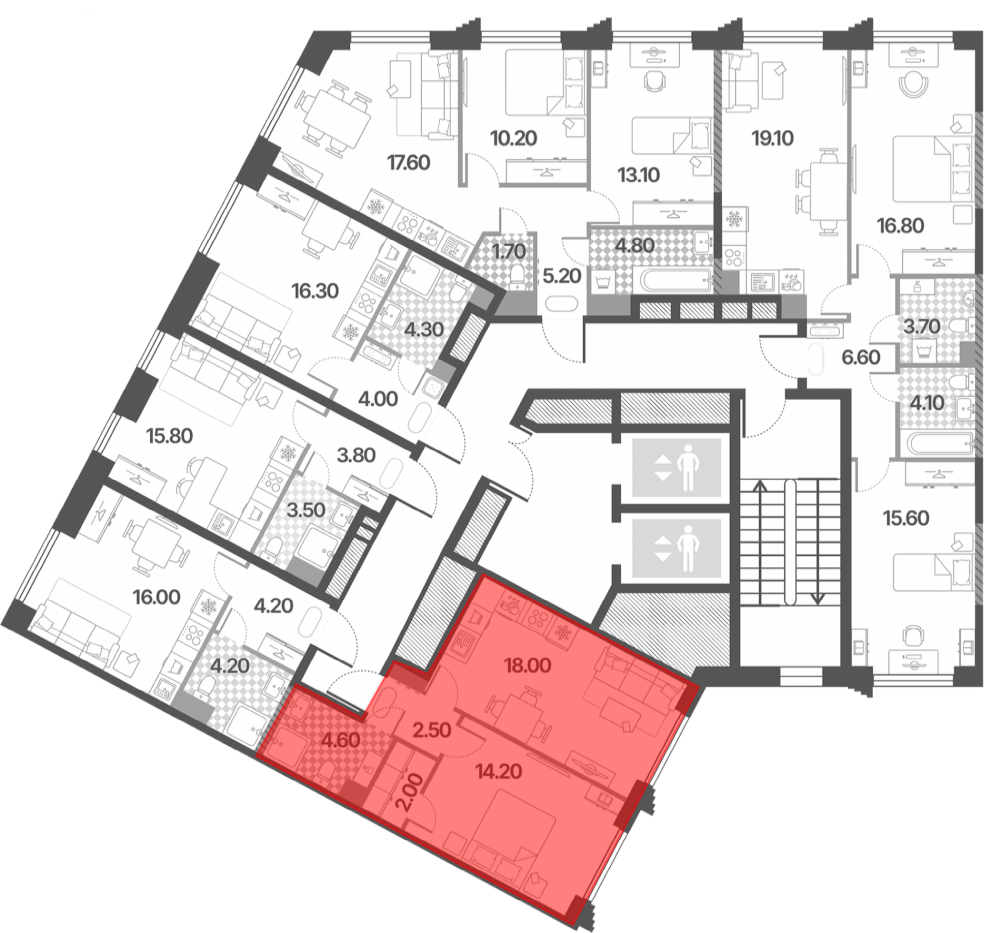 2-к.квартира, 41.3 м², 16 эт. в ЖК Обручева 30 Корпус 2