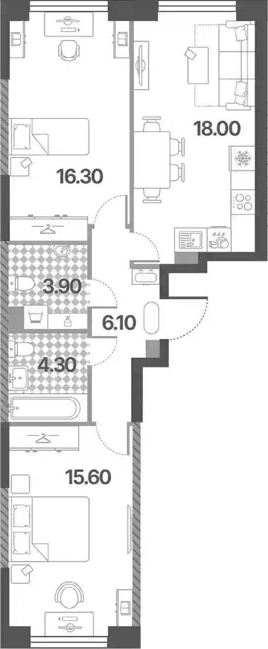 В проекте «Обручева 30» представлено множество планировочных решений. Сдаются они, как с чистовой отделкой, так и без нее. Имеются квартиры с открытыми террасами. Высота потолков — 2,95 метра.
