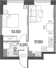 2-к.квартира, 36.2 м², 30 эт. в ЖК Обручева 30 Корпус 1