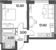 2-к.квартира, 38 м², 32 эт. в ЖК Обручева 30 Корпус 1