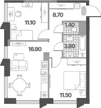 3-к.квартира, 53.4 м², 37 эт. в ЖК Обручева 30 Корпус 1