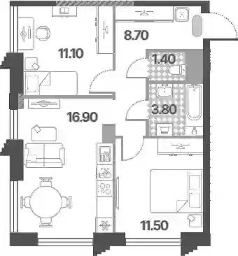 3-к.квартира, 53.4 м², 39 эт. в ЖК Обручева 30 Корпус 1