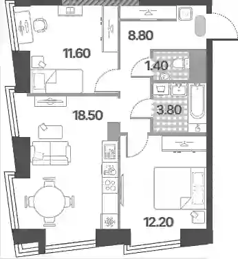 3-к.квартира, 56.2 м², 52 эт. в ЖК Обручева 30 Корпус 1