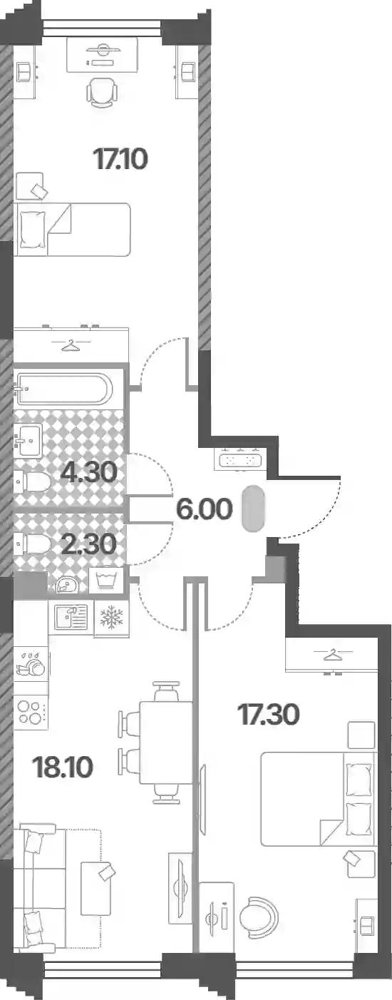 В комплексе «Дмитровское небо»предложено множество планировочных решений: в наличии квартиры, как классического типа, так и европланировки. Сдаются они без стен, высотой потолков 2,7 метра и увеличенными окнами.