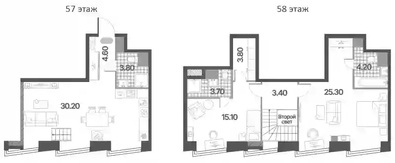 3-к.квартира, 94.1 м², 57 эт. в ЖК Обручева 30 Корпус 1