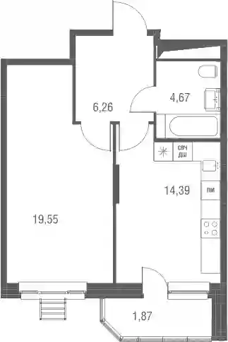 9 560 000 ₽2-к.квартира, 44.67 м², 19 эт.