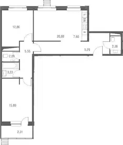 19 143 977 ₽3-к.квартира, 80.1 м², 3 эт.