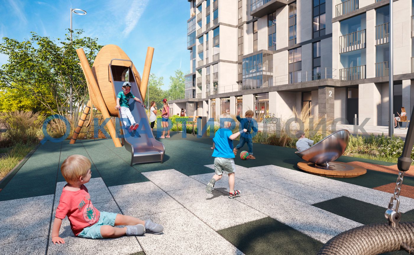 На первых этажах комплекса предусмотрены фитнес-студия, ресторан и коворкинг. Внутренний двор без машин представляет двухуровневое пространство. Для детей отведен нижний уровень, а верхний уровень предназначен для досуга взрослых с местами для спорта, занятий йогой, шезлонгами и деревянными террасами. А ночью во дворе предусмотрен свето-дизайн.