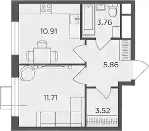 9 191 505 ₽1-к.квартира, 35.03 м², 21 эт.