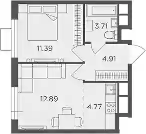9 191 505 ₽1-к.квартира, 35.03 м², 21 эт.
