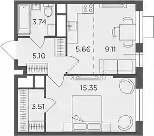 10 380 000 ₽1-к.квартира, 46.16 м², 15 эт.
