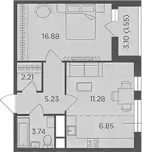 12 950 000 ₽1-к.квартира, 45.12 м², 15 эт.