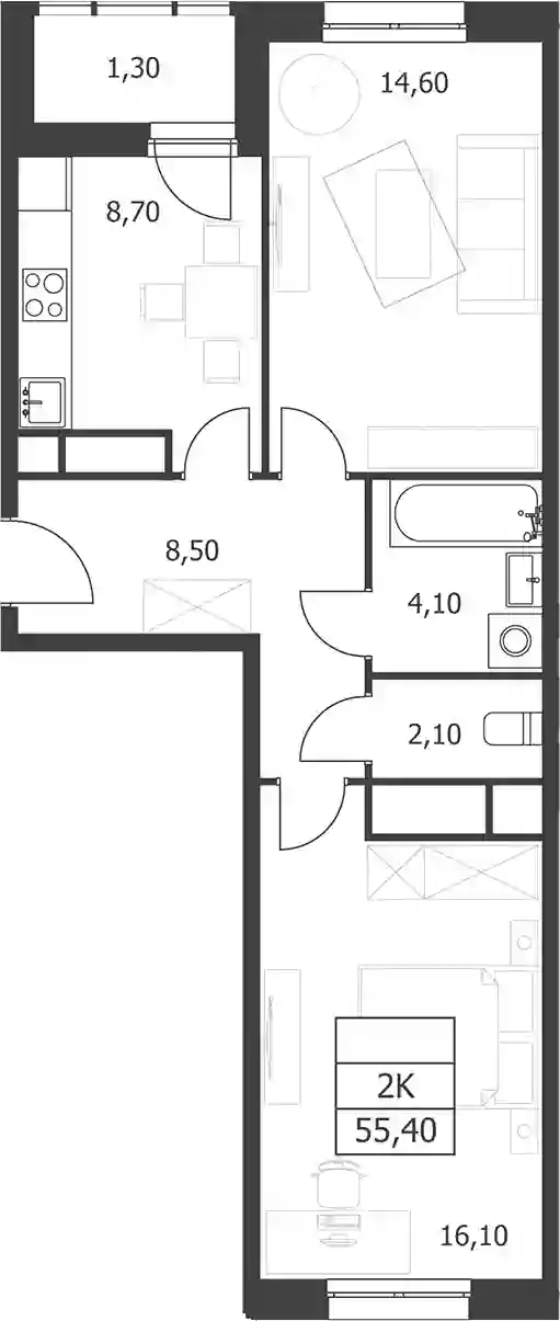10 300 824 ₽2-к.квартира, 53.67 м², 6 эт.