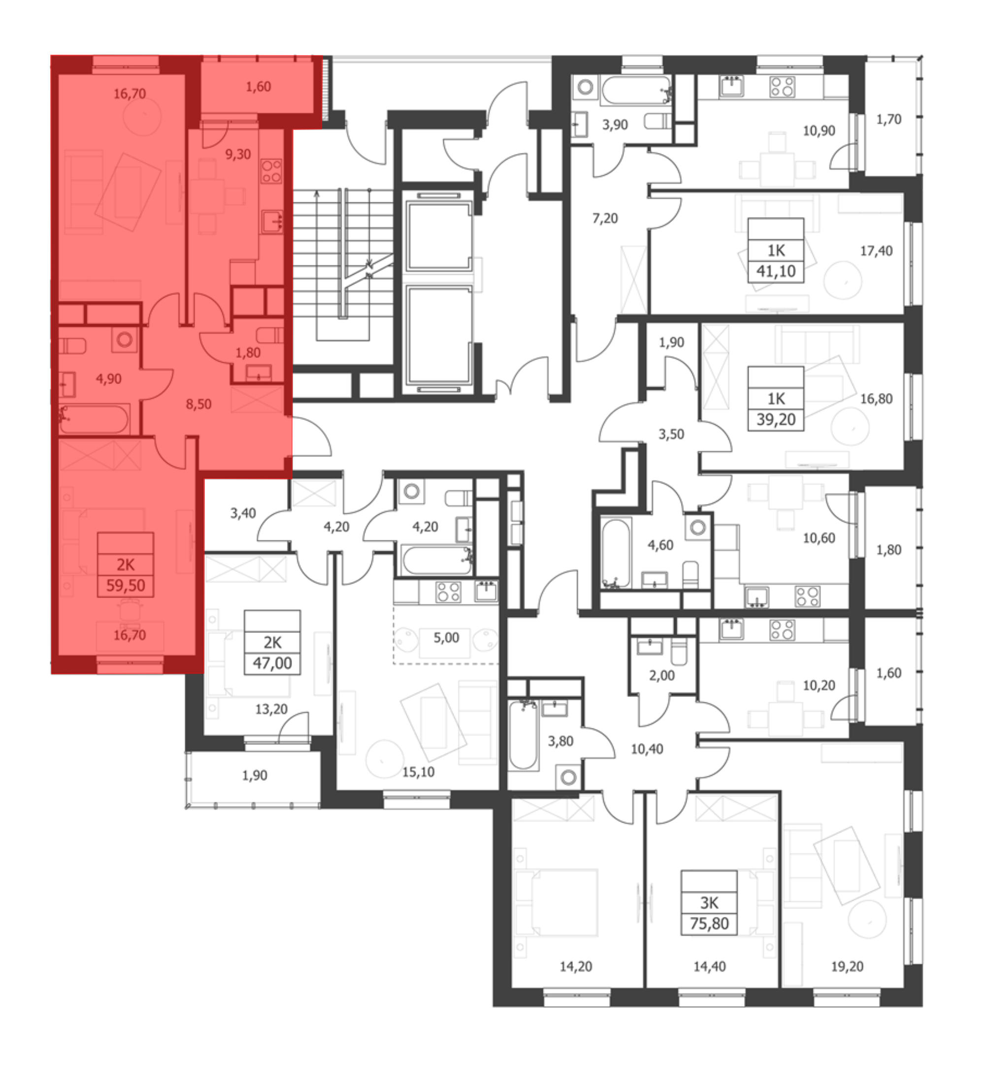 В проекте предлагаются функциональные планировки студий и квартир с 1–3 комнатами площадью от 30 до 77 кв. м. В помещениях установлены увеличенные окна для максимизации естественного света. Высота потолков составляет от 3 до 3,35 м. Доступно 3 варианта отделки: без стен, подчистовая или чистовая, что позволяет выбрать оптимальное решение для будущего жилья.