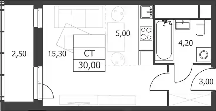 В проекте предлагаются функциональные планировки студий и квартир с 1–3 комнатами площадью от 30 до 77 кв. м. В помещениях установлены увеличенные окна для максимизации естественного света. Высота потолков составляет от 3 до 3,35 м. Доступно 3 варианта отделки: без стен, подчистовая или чистовая, что позволяет выбрать оптимальное решение для будущего жилья.