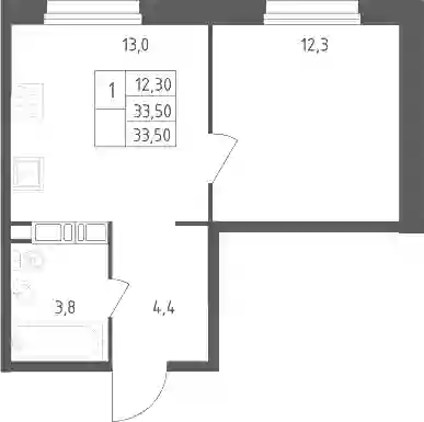 11 821 601 ₽1-к.квартира, 33.5 м², 1 эт.