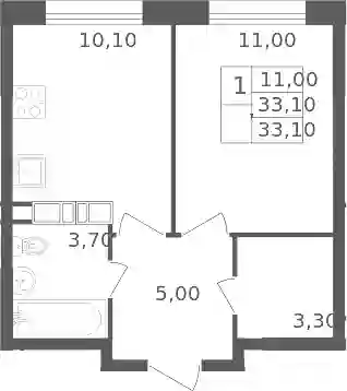 11 044 219 ₽1-к.квартира, 33.08 м², 14 эт.
