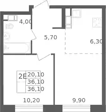 10 806 564 ₽2-к.квартира, 34.26 м², 6 эт.