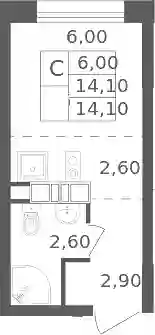 9 007 848 ₽Студия, 14.1 м², 14 эт.