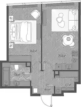 Квартиры в ЖК представлены классическими планировками от студий до трёхкомнатных. Есть возможность выбрать квартиру без отделки, с подчистовой и чистовой отделкой.